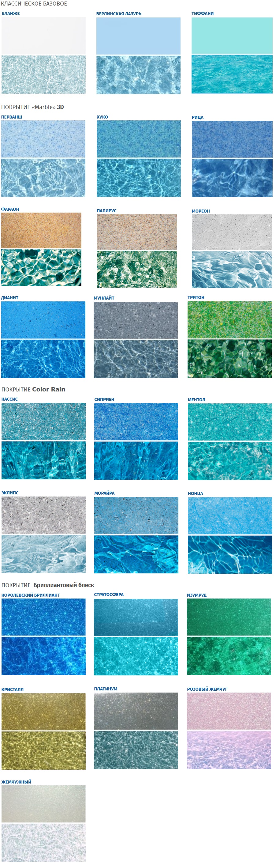 *Обращаем ваше внимание, на то, что разная цветопередача мониторов не отражает стопроцентную цветопередачу покрытия бассейнов.
