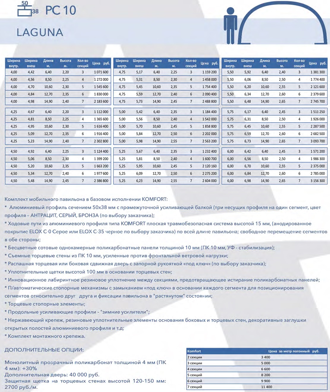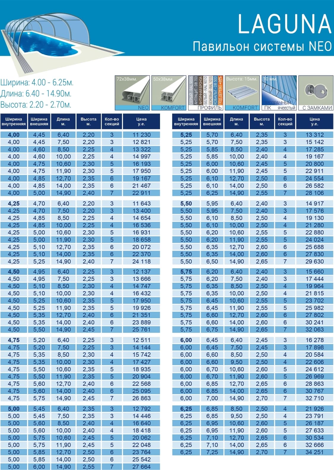 Павильон для бассейна Лагуна ( Laguna ) – является одним из наших самых популярных высоких павильонов. Эта модель предназначена для свободного перемещения по всей укрываемой площади обходных дорожек плавательного бассейна. Высокий павильон типа ЛАГУНА создает над бассейном просторное складное помещение, которое можно передвинуть за периметр плавательного бассейна по ходовым путям. Благодаря одинаковой высоте в свету по всей площади, павильон ничем не ограничивает передвижение людей в закрытом помещении вокруг бассейна. С применением продолженных ходовых путей весь павильон можно сдвинуть за периметр бассейна таким образом, что сегменты образуют защищенный от ветра навес, где можно расположить зону отдыха.