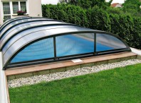 Павильоны для бассейнов – это изделие из алюминиевого профиля и поликарбоната. Конструкция павильона для бассейна представляет собой несколько секций (в виде арок), которые свободно перемещаются по направляющим (конструкция телескопическая).